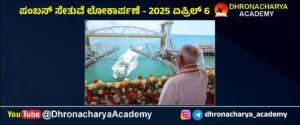 ಪಂಬನ್ ಸೇತುವೆ ಲೋಕಾರ್ಪಣೆ – 2025 ಏಪ್ರಿಲ್ 6 ತಮಿಳುನಾಡಿನ ರಾಮೇಶ್ವರಂನಲ್ಲಿ ನಿರ್ಮಿಸಲಾಗಿರುವ ಭಾರತದ ಮೊದಲ ವರ್ಟಿಕಲ್ ಲಿಫ್ಟ್ ಇರುವ ಪಂಬನ್ ಸೇತುವೆಯನ್ನು ಮಾನ್ಯ ಪ್ರಧಾನ ಮಂತ್ರಿ